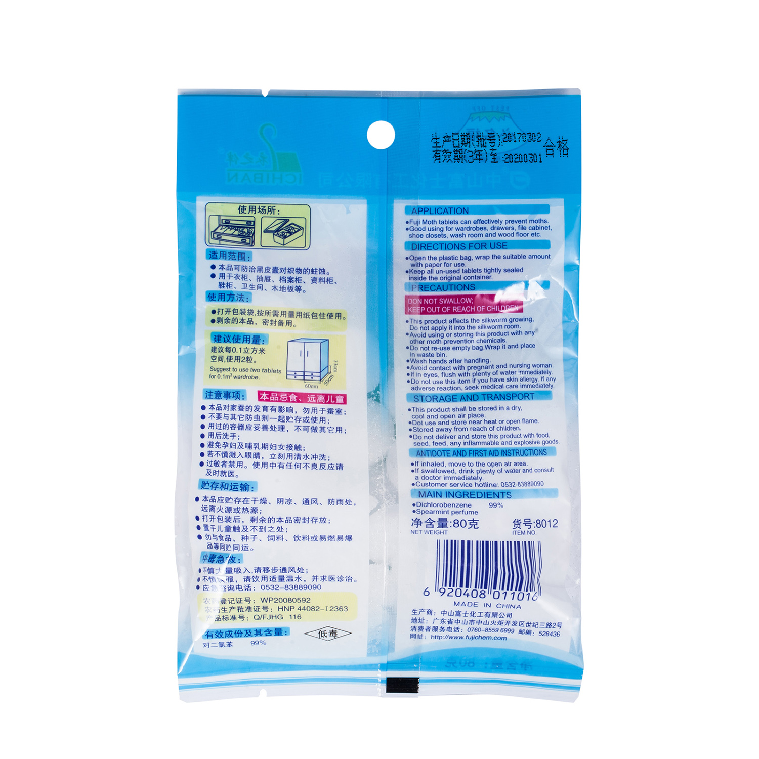 8012 防蛀防霉片劑 對二氯苯防蟲丸 80g